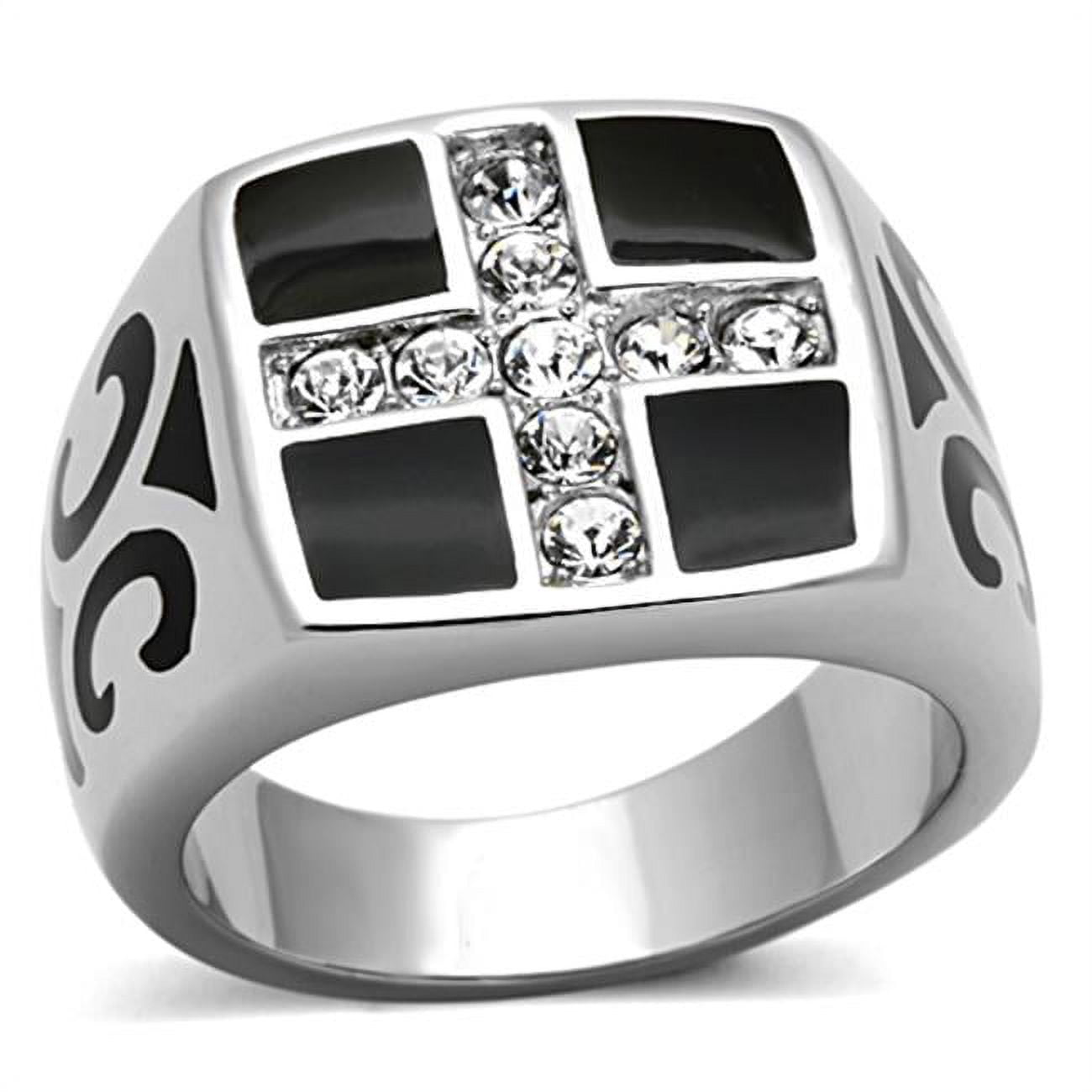 Alamode TK1179-12 Men High Polished Stainless Steel Ring with Top Grade Crystal in Clear - Size 12