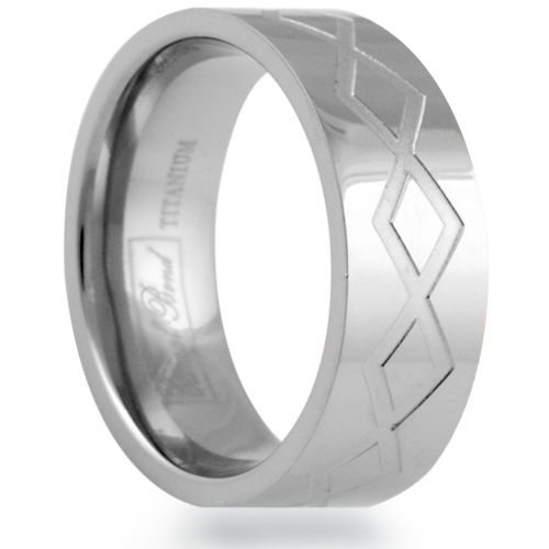 Eternal Bond VJEBTT-012-SZ12 Titanium 8mm Flat Grooved Diamond Greek Key Pattern Polished Comfort Fit Wedding Band -Size