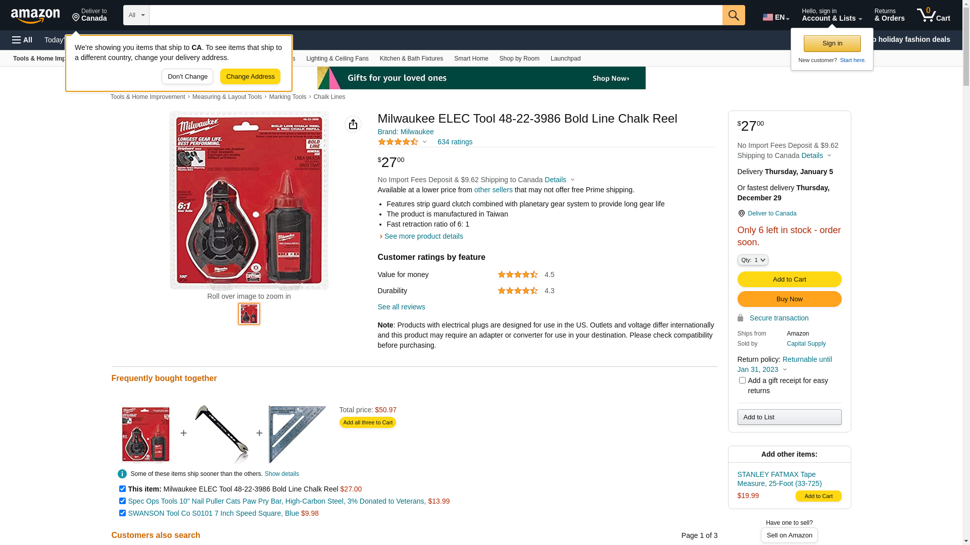 ![]() thetoolcabin.com | B01CGP4VE2 | 1 | Sold out! But arriving within 2-weeks | 1 | 1 @ $22.09 |