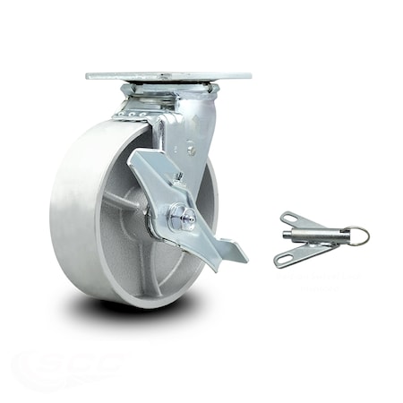 Semi Steel Cast Iron Swivel Top Plate Caster w/6" x 2" Silver Wheel & Top Lock Brake and Bolt on Swivel Lock - 1200 lbs Capacity/Caster - Service Caster Brand