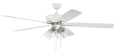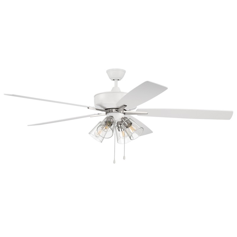 Craftmade 60" Super Pro Ceiling Fan in White/Polished Nickel Finish, Reversible White/Washed Oak Blades, Integrated Light Kit, Heavy Duty 3-Speed Reversible Motor, S104WPLN5-60WWOK