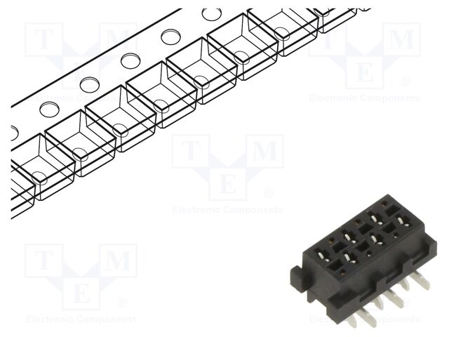 EU RoHS: Compliant ECCN (US): EAR99 Part Status: Obsolete HTS: 8536.69.40.40 Type: Socket Strip Gender: SKT Number of Contacts: 6 Number of Rows: 2 Termination Method: Solder Terminal Pitch (mm): 1.27 Body Orientation: Straight Maximum Current Rating (A): 1.3/Contact Maximum Voltage Rating: 100VAC|100VDC Insulation Resistance (MOhm): 1000 Minimum Operating Temperature (°C): -30 Maximum Operating Temperature (°C): 85 Packaging: Tape and Reel Product Length (mm): 9.7 Product Depth (mm): 6.9 Product Height (mm): 5.3 Mounting: Surface Mount