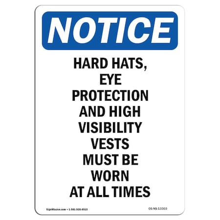 OSHA Notice Sign, Hard Hats Eye Protection And, 14in X 10in Decal