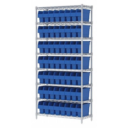 Akro-Mils AWS143630840B Wire Shelving Kit with 64 Bins, 14" x 36" x 74", Chrome/Blue