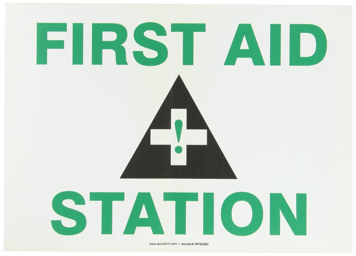 Accuform MFSD960VS Adhesive Vinyl Safety Sign, Legend "First AID Station" with Graphic, 10" x 14, Green/Black on White