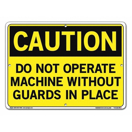 Vestil SI-C-25-C-AL-080 DO NOT OPERATE MACHINE WITHOUT GUARDS IN PLACE Caution Sign, Aluminum, 0.080" Overall Size, 14.5" W x 10.5" H