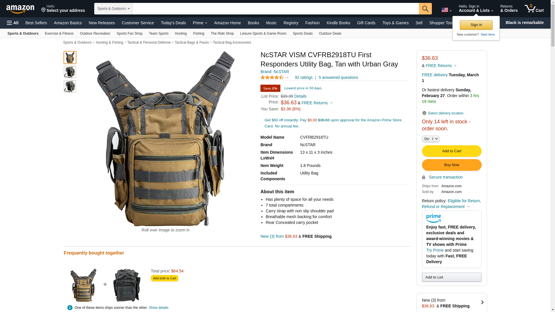 NcSTAR VISM CVFRB2918TU First Responders Utility Bag, Tan with Urban Gray