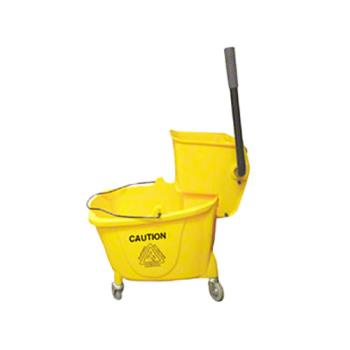 Value-Plus Sidepress Wringer and Plastic Bucket Combo has higher back for more comfortable wringing and lower front for easier placing of mop reducing back strain. large target area; large capacity side press/squeeze wringer accomodates 12-32 ounce mops. Smooth surface for easy cleaning. Non-marking gray casters (not assembled). Capacity: 35 Quart Higher back for more comfortable wringing Lower front for easier placing of mop reducing back strain Large capacity side press/squeeze wringer accommodates 12-32 ounce mops Non-marking gray casters, not assembled.