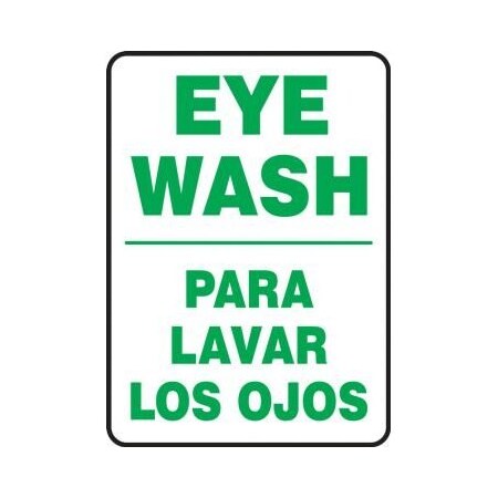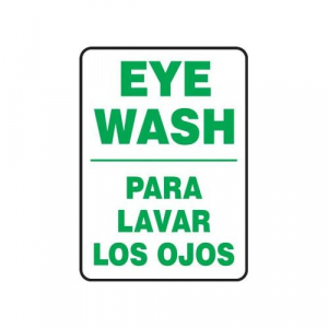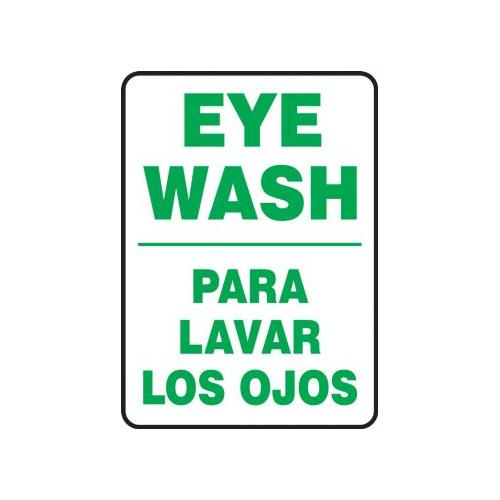 Accuform SBMFSD442VS Adhesive Vinyl Spanish Bilingual Safety Sign, Legend "Eye WASH/para Lavar Los OJOS", 20" Length x 14" Width x 0.004" Thickness, Green on White