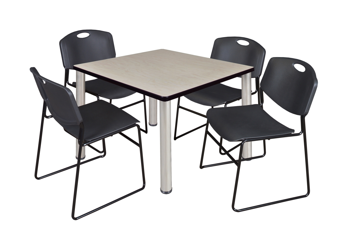 Regency TB3636PLBPCM44BK Kee 36 in. Square Breakroom Table & 4 Zeng Stack Chairs, Maple, Chrome & Black