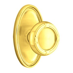 Brass Designer Knobs Collection - Half Dummy Ribbon & Reed Knob With Oval Rose in Polished Brass by Emtek - 8520RBK.HALF.US3 | MyKnobs