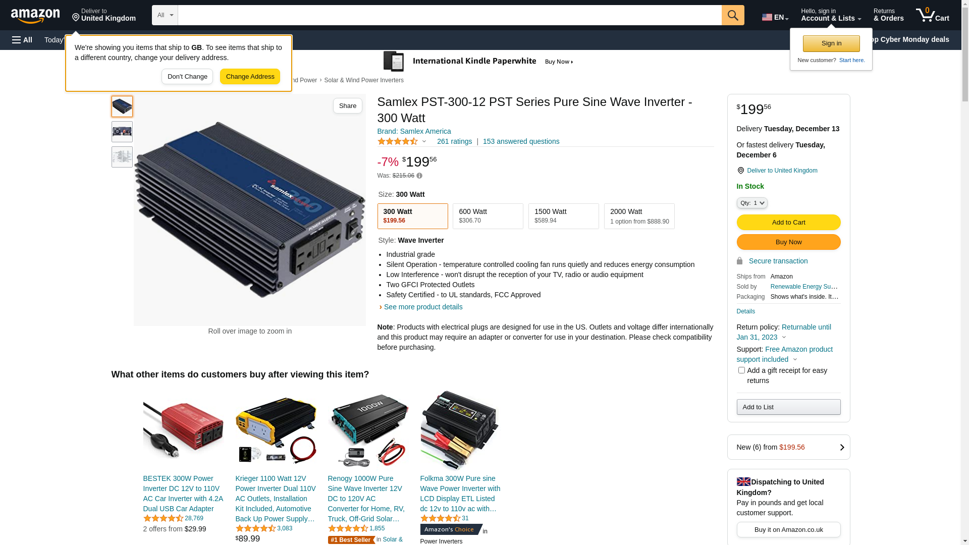 | SAMLEX AMERICA-PST-300-12 | 1 | 1 | 1 @ $154.90 | ||