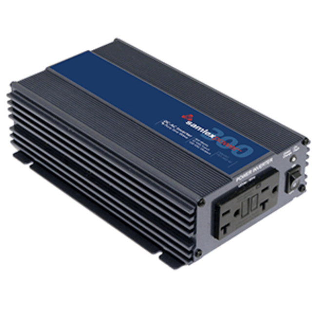 Samlex America - 300 Watt Inverter SAMLEX DC to AC power inverter. 300W continuous, 500W intermittent. Pure sine wave. Continuous fan. One AC outlet. Tubular screw down terminals."