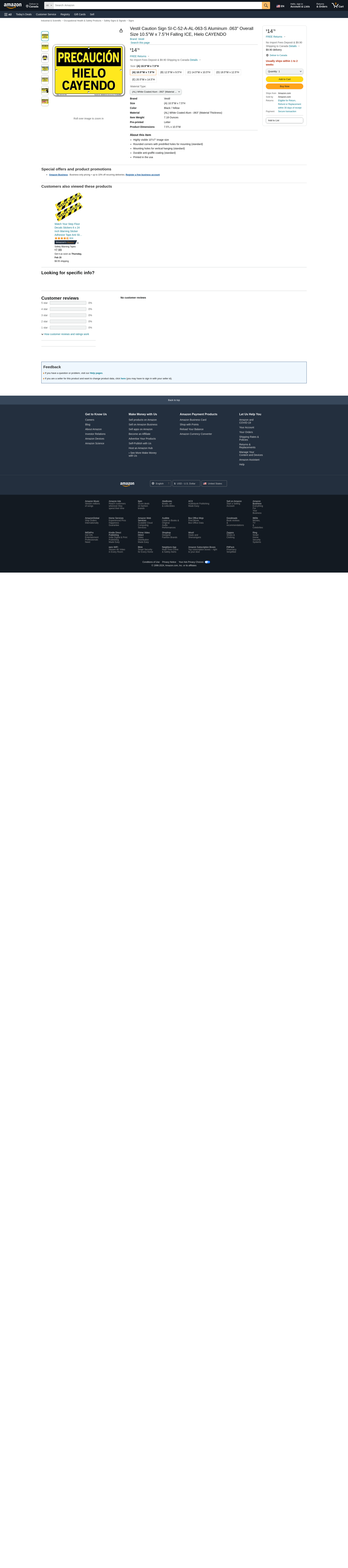 Vestil Caution Sign SI-C-52-A-AL-063-S Aluminum .063" Overall Size 10.5"W x 7.5"H Falling ICE, Hielo CAYENDO