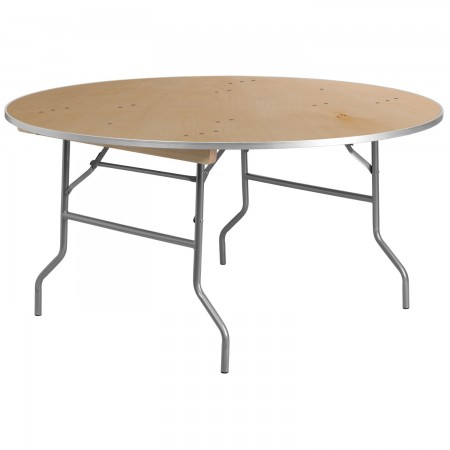 Flash Furniture 60'' Round HEAVY DUTY Birchwood Folding Banquet Table with METAL Edges [XA-60-BIRCH-M-GG]
