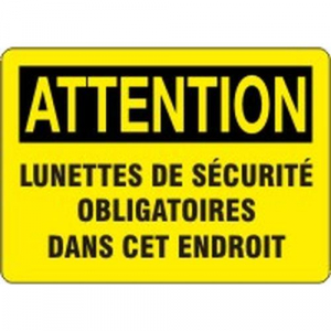 Attention Lunettes De Securite Obligatoires Dans Cet Endroit 7" x 10" - MCPP934VA - Jendco Safety Supply