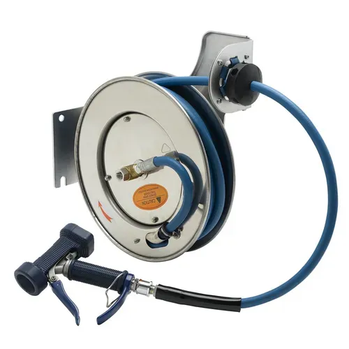 T&S Brass B-7133-06 Hose Reel, Open, Stainless Steel, 1/2" x 35' Hose, 7/16" Front Trigger Water Gun