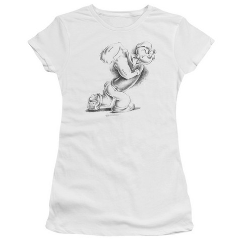 Trevco Popeye-Here Comes Trouble Short Sleeve Junior Sheer Tee, White - Large