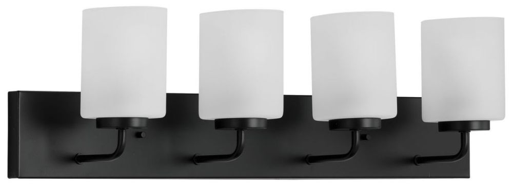 Progress Lighting Merry Collection 4-Light Etched Glass Matte Black Transitional Bath Vanity Light