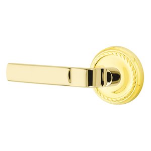 Brass Modern Hardware Collection - Privacy Aston Left Handed Lever with Rope Rose in Unlacquered Brass by Emtek Hardware - 8201238ASTLHUS3NL | MyKnobs