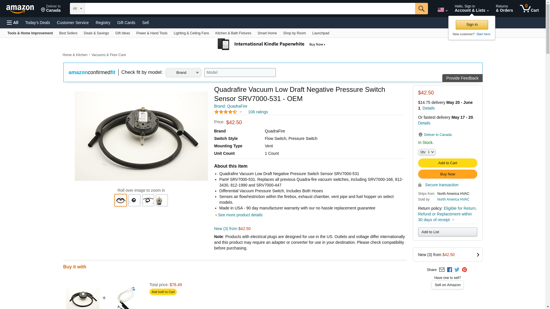 - Quadrafire Vacuum Low Draft Negative Pressure Switch Sensor SRV7000-531