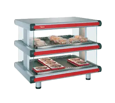Dual Shelf; Designer; Horizontal; 10 Rods; Dimensions: 30.13" W x 27" L x 29" H Hatco GR2SDH-24D Warm Red Glo-Ray Designer 24" Horizontal Double Shelf Merchandiser - 120V - HeatedDual Shelf; Designer; Horizontal; 10 Rods; Dimensions: 30.13" W x 27" L x 29" HFree-StandingDouble Shelf W/10 RodsThermostatIncandescent LightHardcoat Aluminum BaseTempered Glass End PanelsDesigner Panels & Corner Caps1640 WattsConstruction: AluminumHeated Shelf Construction: AluminumControls: Thermostat ControlShelf Style: Horizontal Double ShelfLength: 30" Heated Sandwich Holding Bins GR2SDH-24D, HAT-GR2SDH24D, 042-GR2SDH24D, GR2SDH24D, HAT-GR2SDH-24D, 413GR2SH24DR