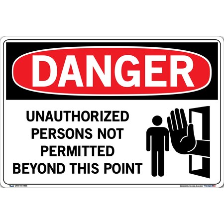 Vestil SI-D-68-D-LB-011 UNAUTHORIZED PERSONS NOT PERMITTED BEYOND THIS POINT Danger Label, Vinyl, 0.011" Overall Size, 18.5" W x 12.5" H