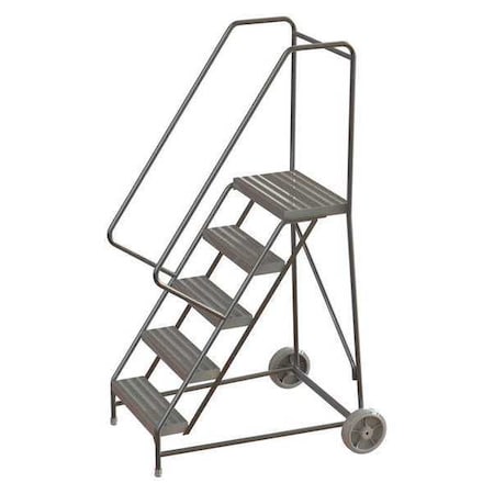 Tri-Arc WLARTR105244 5-Step Aluminum Wheelbarrow Style Rolling Ladder with 24" Wide Solid Ribbed Tread Steps, 14" Deep Top Platform with Handrails and Guardrails