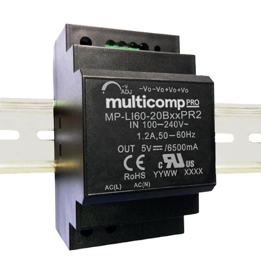 Multicomp Pro Power Supply, Ac-Dc, 24V, 2.5A - MP-LI60-20B24PR2