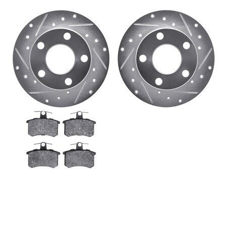Dynamic Friction Company Rear Brake Rotors-Drilled and Slotted-Silver with 5000 Euro Ceramic Brake Pads 7602-74012