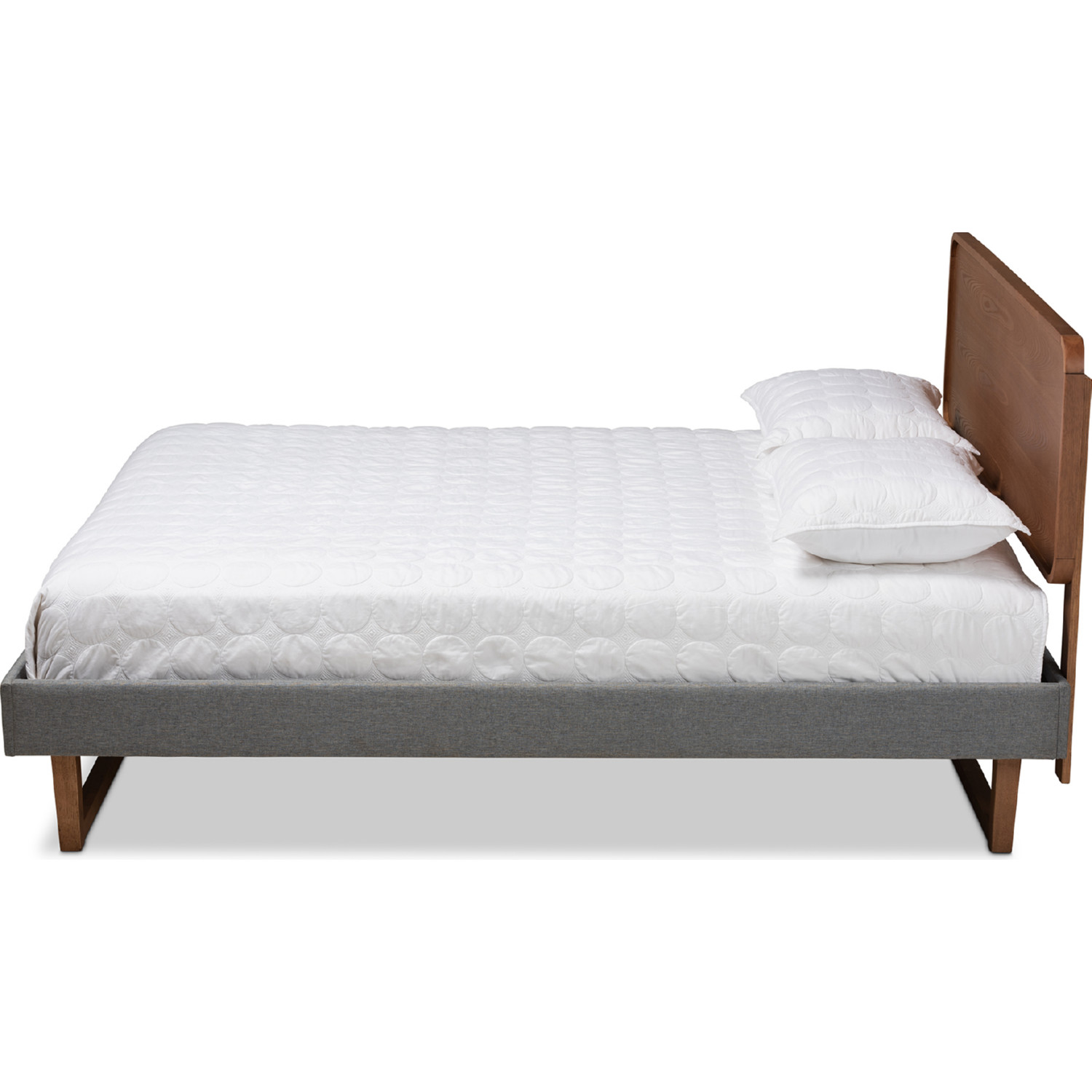 Baxton Ayla-Dark Grey/Ash Walnut-King Ayla King Platform Bed in Dark Gray Fabric & Walnut Brown