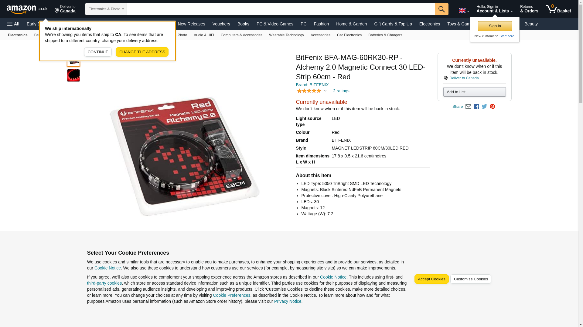 Bitfenix Alchemy 2.0 Magnetic 30 LED Light Strip - 600mm - Red BFA-MAG-60RK30-RP