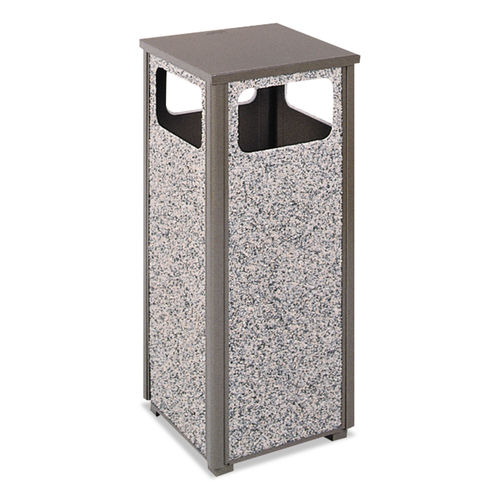 Rubbermaid FGR12202PL Aspen Flat-Top Empire Green with Desert Brown Stone Panels Square Steel Waste Receptacle with Rigid Plastic Liner 12 Gallons