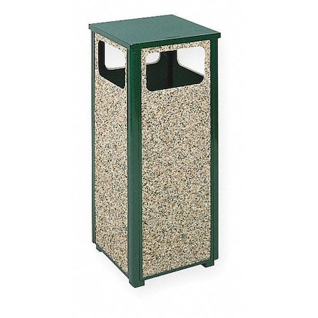 Rubbermaid Steel Stone Panel Receptacle - Trash Receptacle - 12-Gallon Capacity - Green Frame/Desert Brown Panels