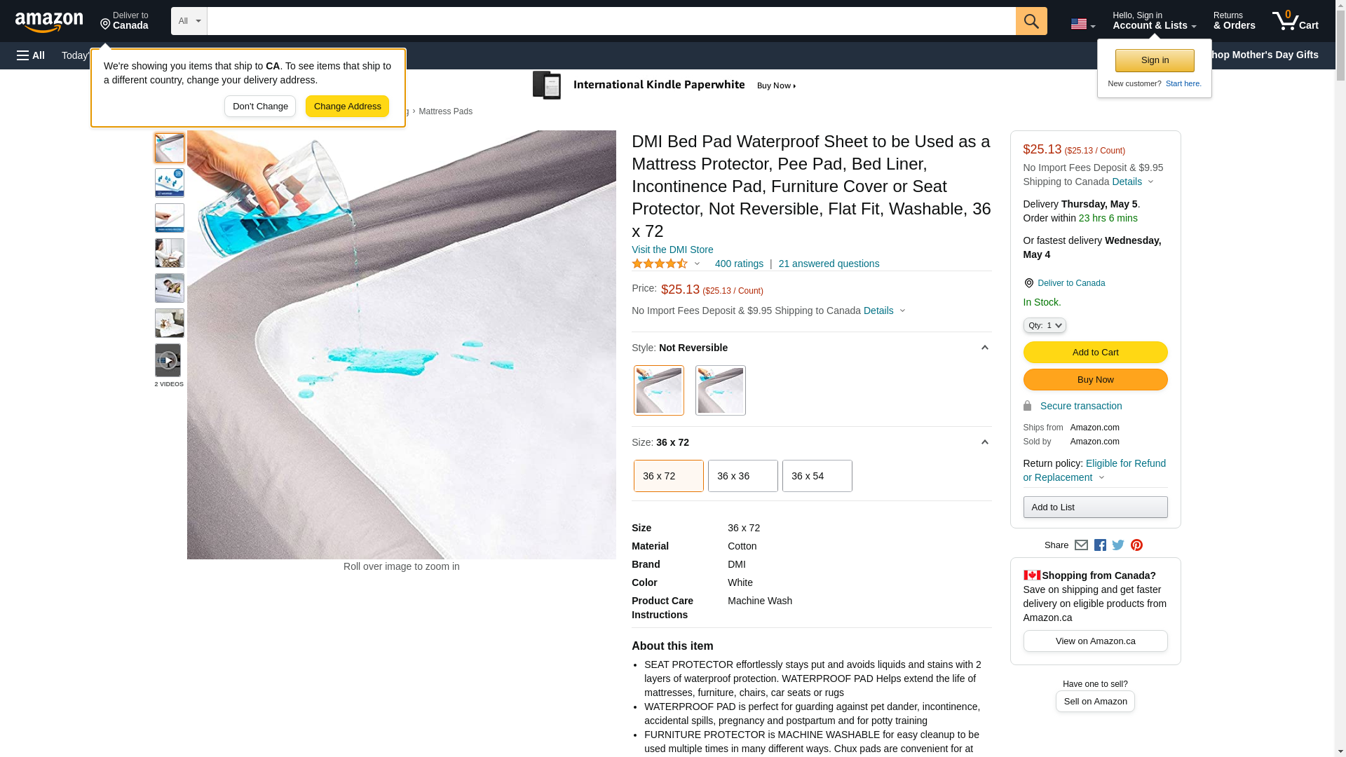 DMI Bed Pad Waterproof Sheet to be Used as a Mattress Protector, Pee Pad, Bed Liner, Incontinence Pad, Furniture Cover or Seat Protector, Not Reversible, Flat Fit, Washable, 36 x 72