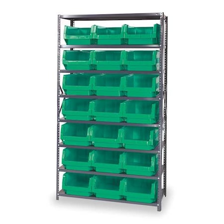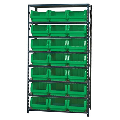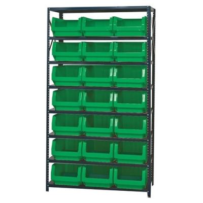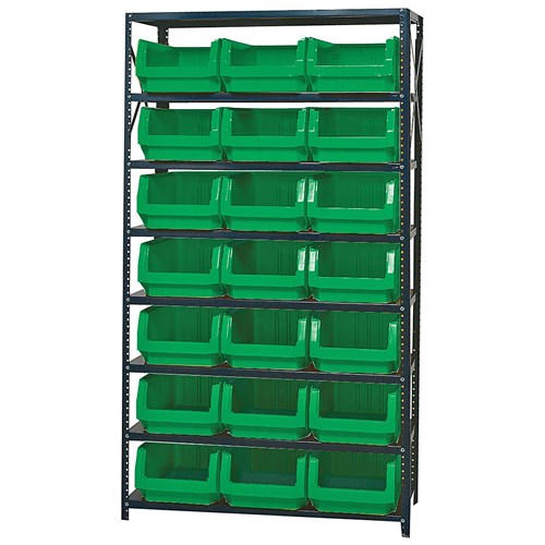 8 Shelf Open Unit W/21 Green Bins