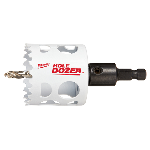 - Includes: (1) 2 in. Hole Dozer Bi-Metal Hole Saw, (1) 3/8 in. Arbor, and (1) Pilot Bit