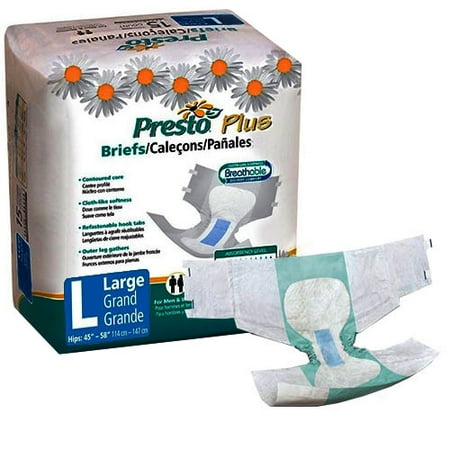 Presto Breathable Panel Brief, Value Plus Absorbency, Large, 45"-58". Manufacturers Part # ABP01040 Dimensions: 20 X 11.2 X 12