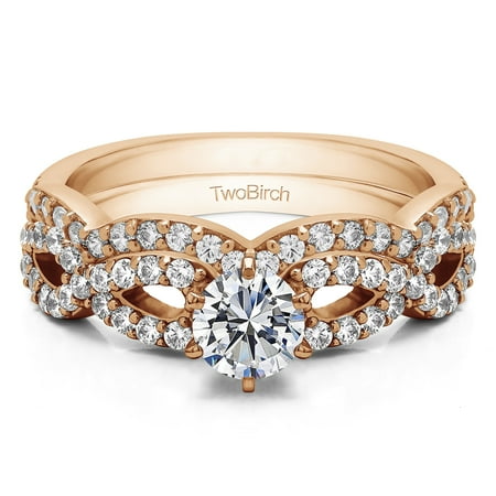 <ul> <li>Engagement Ring sets are made to fit together perfectly.</li> <li>The ring is set with 1.27 carats of Round stones Brilliant Moissanite</li> <li>This ring is available in 10K Gold, 14k Gold and sterling Silver. Click TwoBirch above to see it in all of its variations.</li> </ul>