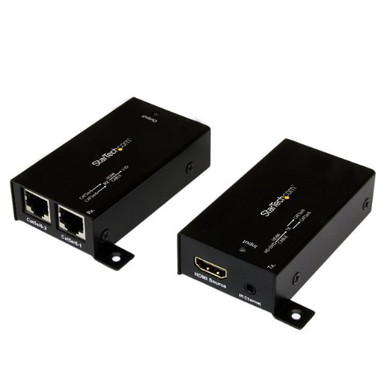 StarTech.com HDMI Over Dual CAT5 / CAT6 Extender with Infrared IR 100ft /30m HDMI Over Ethernet Cable Extender Power Free 1080p (ST121SHD30),Black