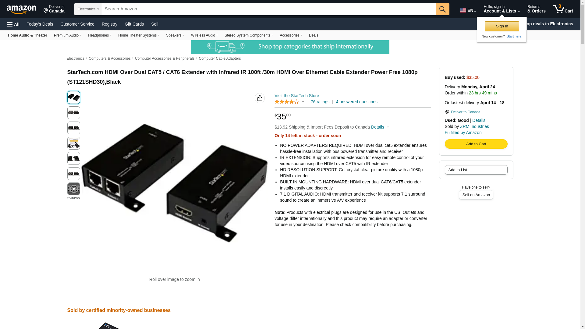 Buy Startech ST121SHD30 As low as $68.16 in bulk Out of Stock Startech.com Hdmi Over Cat5 / Cat6 Extender With Ir - 100 Ft [30m] Power Free - 1 Input Device - 2