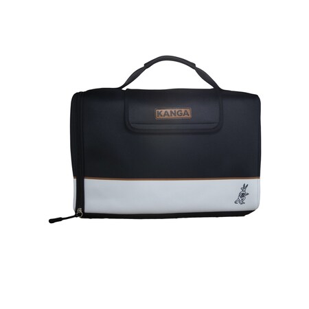 Highlights: Capacity: 144 oz. Color: Black/White Can Capacity: 12 cans 3-layer insulating system Kase Mate can keep drinks cool up to seven hours Hidden stealth pocket Padded handle grip Slides right on a 12pk of soda or beer