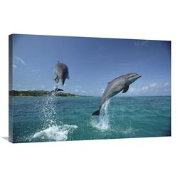 Global Gallery GCS-452357-2436-142 24 x 36 in. Bottlenose Dolphin Pair Leaping, Honduras Art Print - Konrad Wothe