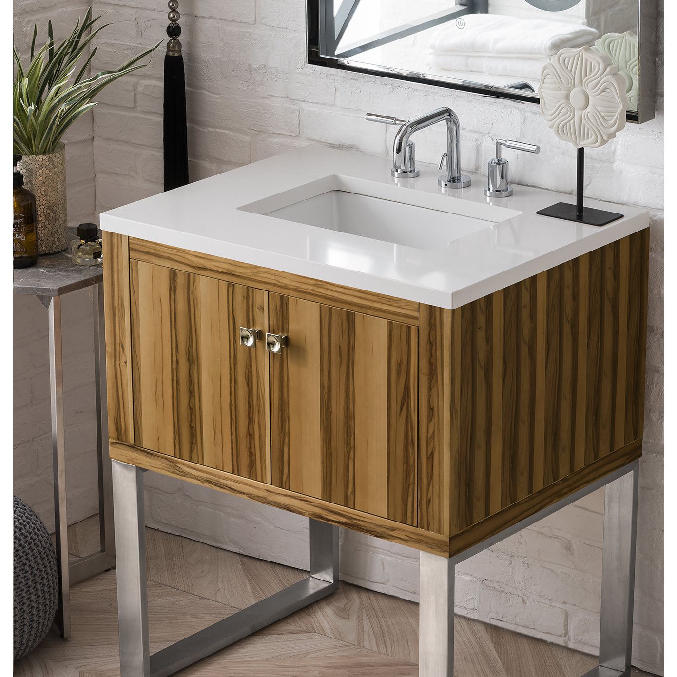 Standard Plumbing Supply - Product: Westlake 30" Single Vanity, Natural Applewood with 3 CM Classic White Quartz Top w/ Sink
