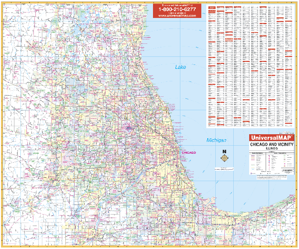 Universal Map 762553677 Chicago IL 50 Mile Wall Map
