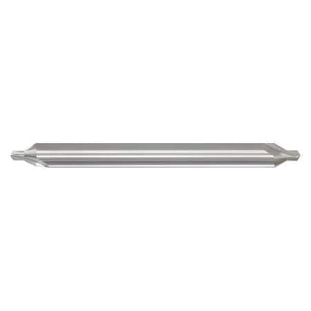 - <b>Price For:</b> Each <b>Material - Machining</b>: Carbide <b>End Type- Holemaking</b>: Double End <b>Drill Size</b>: #4 <b>Countersink Style</b>: Plain <b>Countersink Angle</b>: 90 Degrees <b>Size</b>: #4 <b>Series</b>: 300 <b>Finish</b>: Bright (Uncoated) <b>Item</b>: Center Drill <b>Overall Length</b>: 4" <b>Included Angle</b>: 90 Degrees <b>Finish - Machining</b>: Bright (Uncoated) <b>Body Dia.</b>: 5/16" <b>Cutting Direction</b>: Right Hand