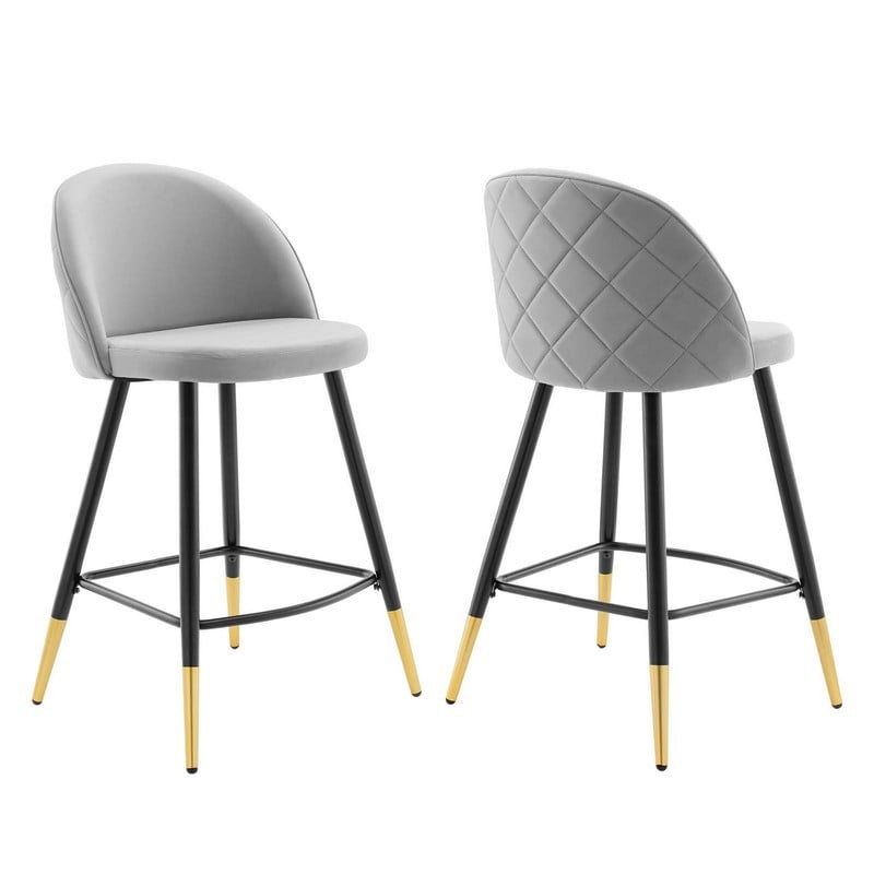 Modway Cordial Performance Velvet Dining Counter Stools in Light Gray - Set of 2