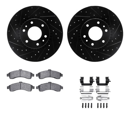 Dynamic Friction Company Front Brake Rotors-Drilled and Slotted-Black with 5000 Euro Ceramic Brake Pads includes Hardware 8612-48003