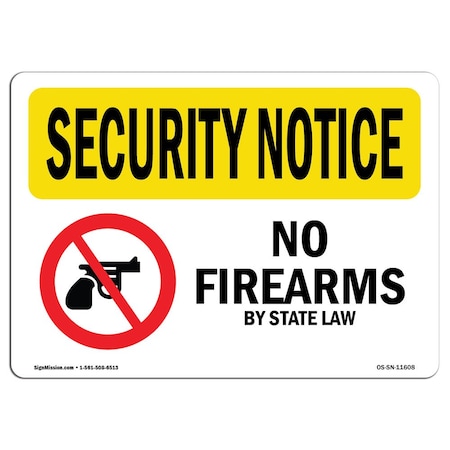OSHA Security Notice Sign - No Firearms by State Law | Vinyl Label Decal | Protect Your Business, Construction Site, Warehouse & Shop Area | Made in The USA