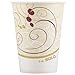 This SOLO R9N-J8000 disposable 9 oz. paper cold cup with Symphony print has a wet wax coating for rigidity and resistance to leaking. It is suitable for serving milkshakes, smoothies, soda, and other cold beverages. This disposable paper cold cup withstands beverage temperatures up to 105 degrees F. It is 3.8" high, has a 3" diameter, and is compatible with a SOLO L9N-0100 plastic lid (sold separately).